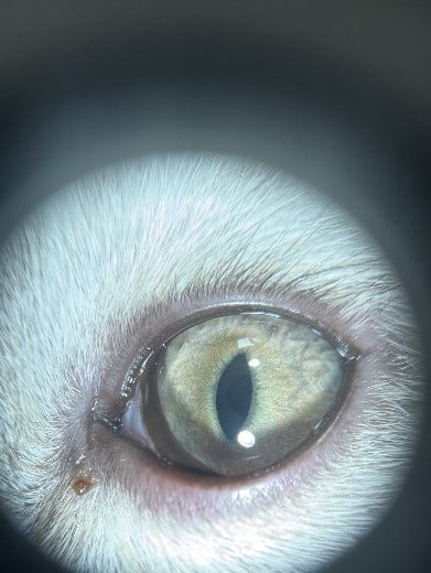 RECHECK (2 days later): The owner reported that the eye was still squinting, although discharge is now clear and no longer mucoid.
